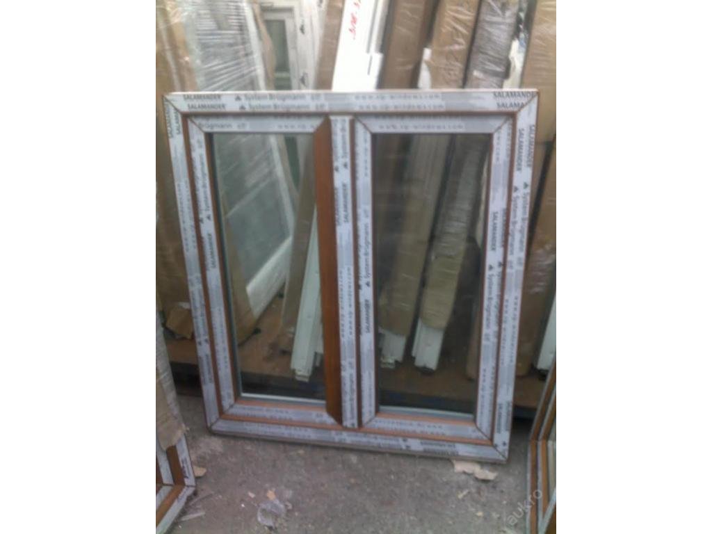 Plastová okna 100x110, kování ROTO , dvoukřídlá, otevírací/sklopná + mikroventilace, nová, 5komor, barva zlaty dub/bílá, termoizolační trojsklo Ug= 0,6 W/m2k.